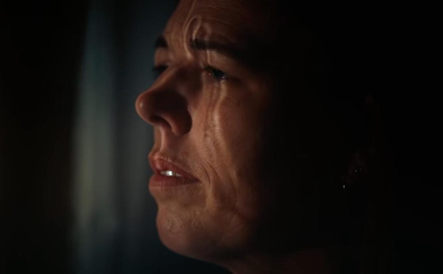 尤其有一幕,母亲站在窗边忏悔,雨水透过玻璃在她脸上印下道道扭曲的水痕。