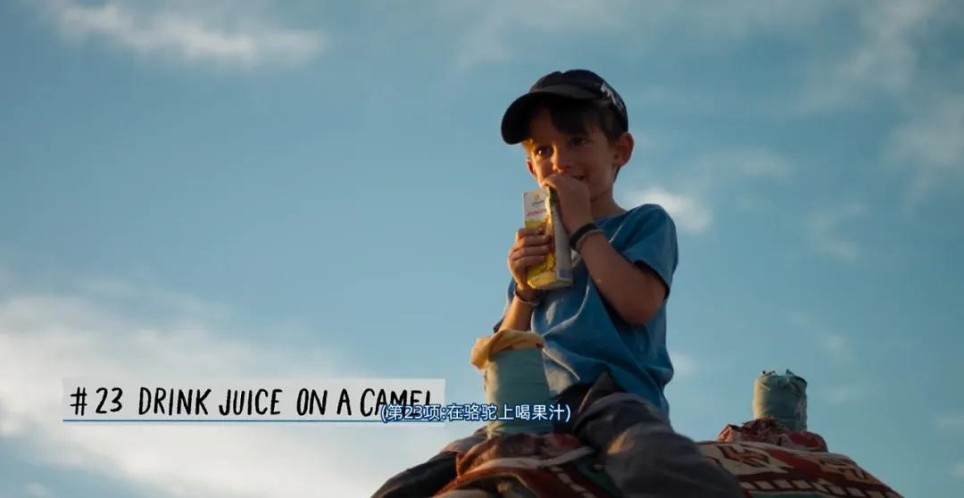 比如4岁的劳伦特想要骑在骆驼背上喝果汁,一家人就去到埃及,让孩子真的骑着骆驼喝果汁。
